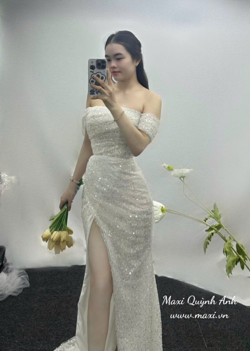 VÁY CƯỚI BODY XẺ XẾP LY EO TRỄ VAI