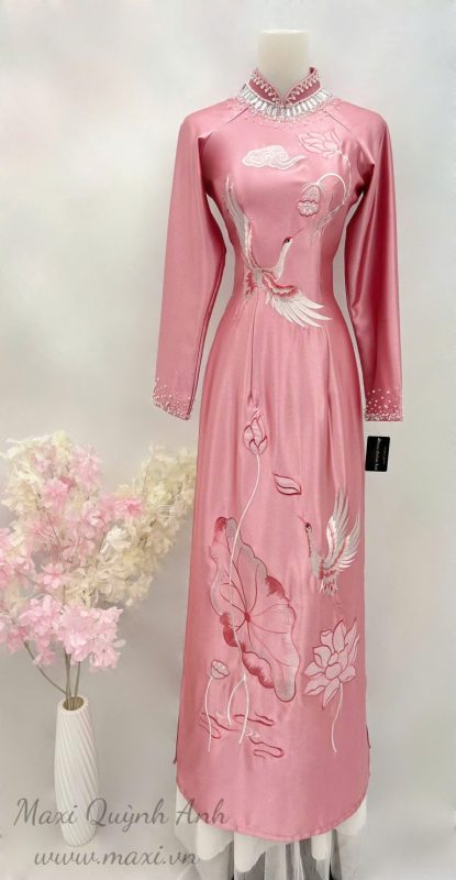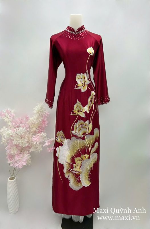 Hoa sen, biểu tượng của sự thanh cao và thuần khiết, luôn là lựa chọn hàng đầu cho áo dài trung niên. Các mẫu áo dài của Maxi Quỳnh Anh được thêu tỉ mỉ từng cánh hoa, nhụy hoa được làm nổi 3D một cách sống động, tạo nên vẻ đẹp sang trọng và đầy tính nghệ thuật.