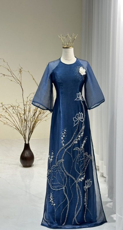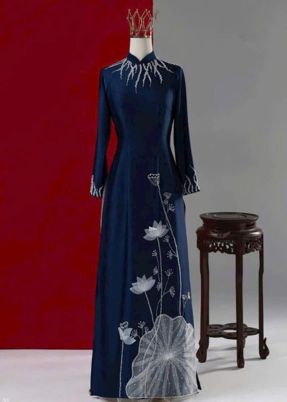 1. Áo Dài Họa Tiết Hoa Sen Thêu Tinh Xảo: