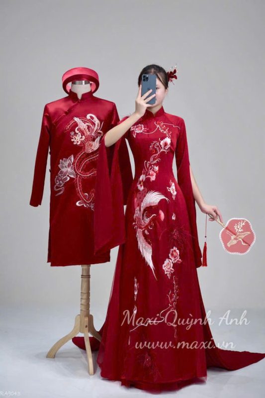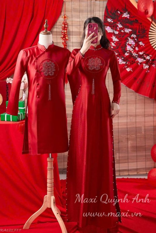 Phong cách “kết hỷ” nghĩa là sử dụng các loại kết hạt, đá quý, cườm đỏ tượng trưng cho sự sung túc, viên mãn và hạnh phúc. Maxi Quỳnh Anh giới thiệu loạt mẫu áo dài tối ưu sắc đỏ may mắn, với kỹ thuật kết hỷ chuyên nghiệp, tạo nên hiệu ứng lấp lánh lộng lẫy nhưng không quá rườm rà – rất phù hợp với không khí lễ cưới truyền thống.