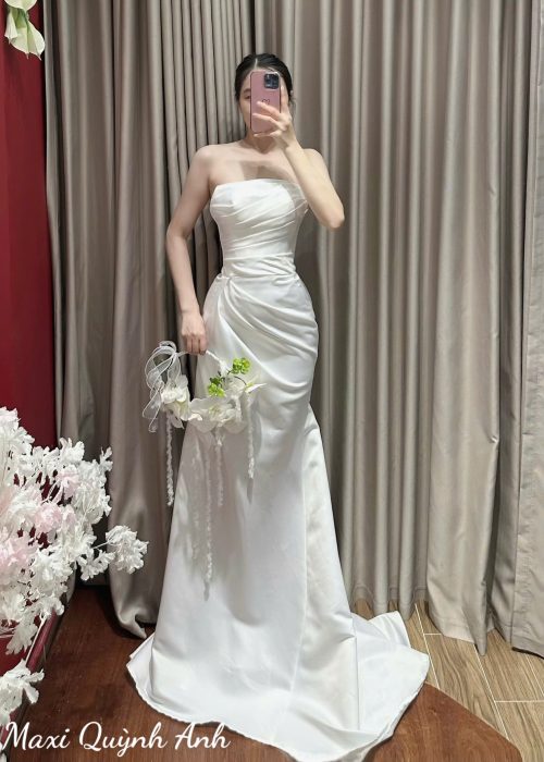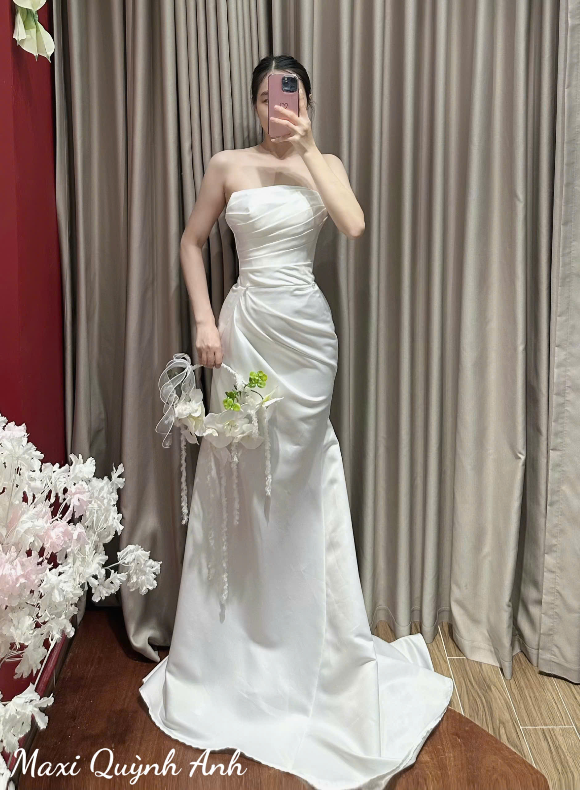VÁY CƯỚI BODY XẾP LY NGỰC CAO CẤP KÈM CHOÀNG RỜI