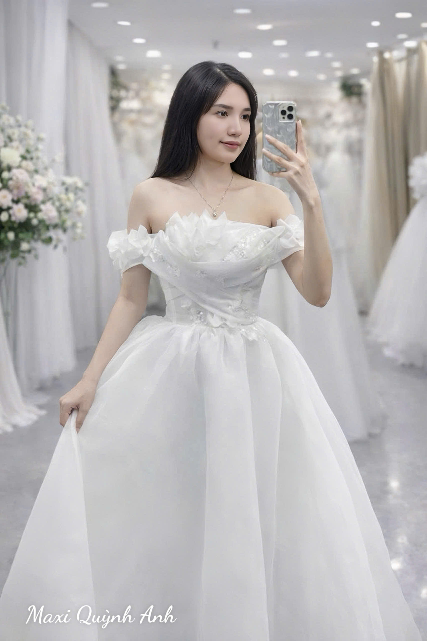 VÁY CƯỚI HOA ORGANZA